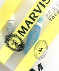 MARVISのオリジナルロゴ入り歯ブラシです。 ホワイトにシルバーのロゴが施されたシンプルなデザインは、バスルームをシックに演出してます。また、大きめのブラシ面が、歯の表面を一気に磨き上げてくれ、より一層、爽快感を実感いただけます。